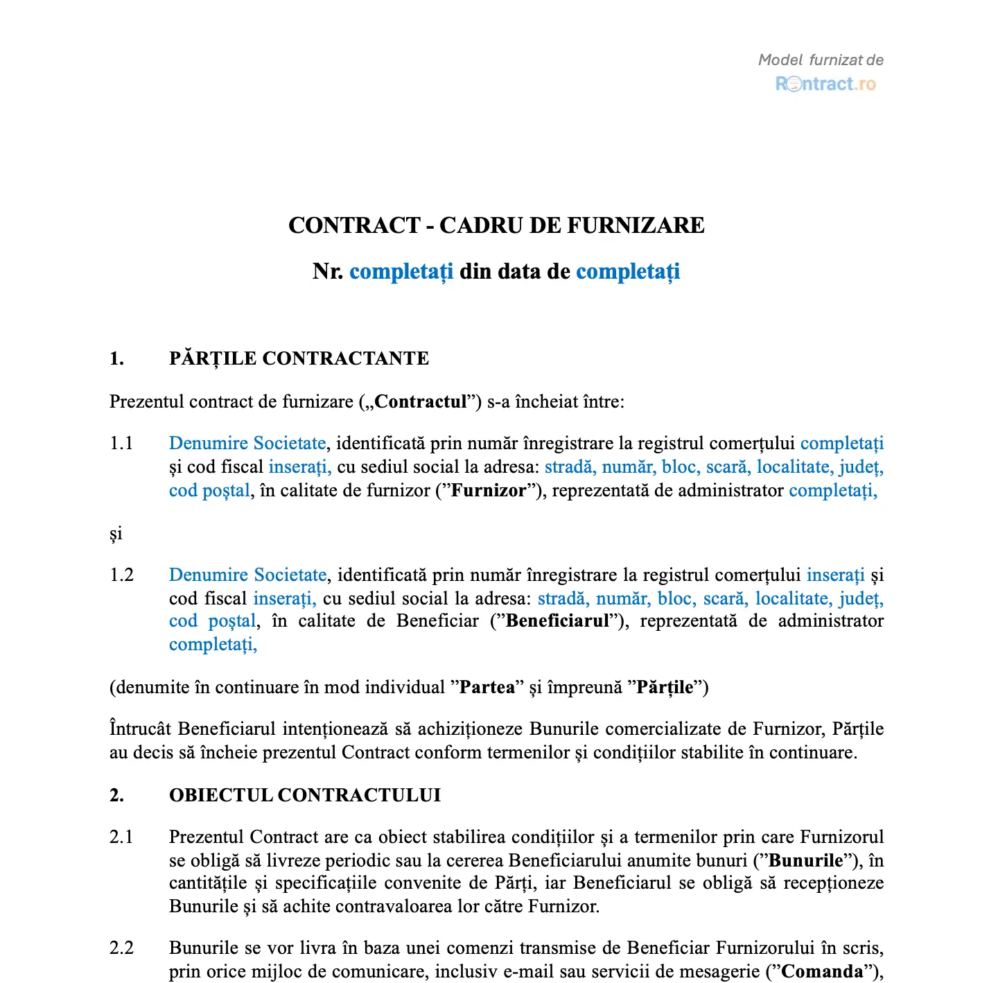 2.2. Contract-cadru furnizare bunuri: articole de pe blog