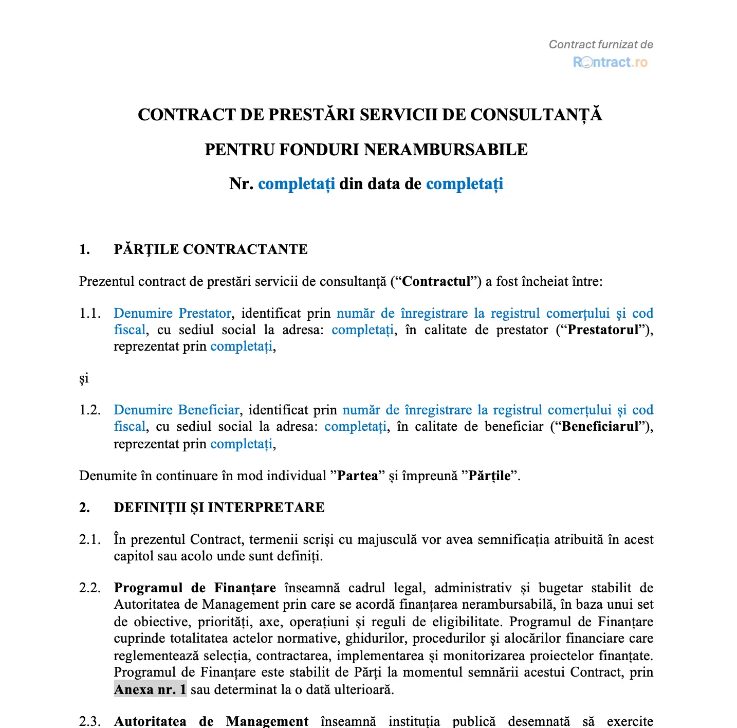 📌 Contractul poate fi ușor adaptat unei varietăți de proiecte.