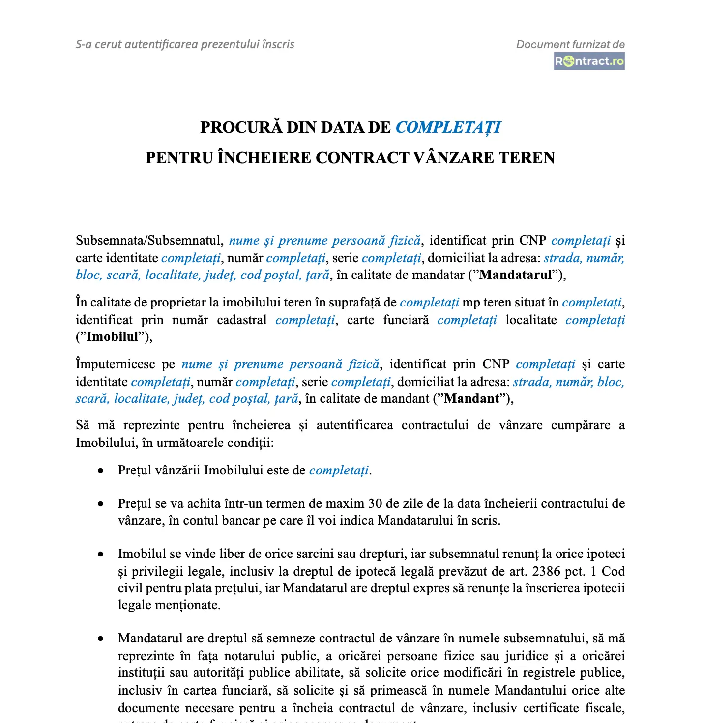 ⚠️ Modelul oferit de Rontract reprezintă o procură specială.
